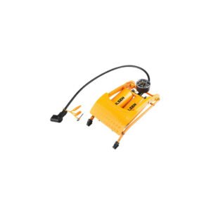 Пристрій обладнаний цифровим манометром, який служить для контролю тиску під час накачування коліс, а також для автоматичного відключення компресора при досягненні заданого рівня тиску. Компресор підключається до бортової мережі автомобіля через гніздо прикурювача, але так як компресор більшої робочої потужності в комплекті є перехідник для підключення безпосередньо до клем акумуляторної батареї. Має універсальний кручений шланг-подовжувач довжиною 2 метри. З’єднання з ніпелем шини проводиться за рахунок швидкозйомного наконечника.