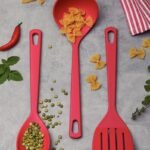 - Набір: кухонна ложка, лопатка з прорізами, ополоник.