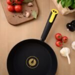 Зручність використання даної сковороди досягається завдяки і ергономічній ручці з бакеліту. Додаткове покриття soft-touch, крім тактильного задоволення, захищає руки від опіків і дозволяє не вислизає навіть з вологих долонь. Додаткова яскрава вставка підкреслює дизайн сковороди.