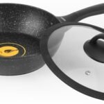 Сковорода з кришкою Zira від Ringel – це відмінний варіант як для приготування страв із соусів, самих соусів і тушкування, завдяки високим бортикам, так і прекрасний посуд для розігрівання. Виготовлені з високоякісного кованого алюмінію, дані сковороди є міцним посудом зі швидким і рівномірним нагріванням. Дно сковорідок цієї серії має додаткове потовщення до 3,2 мм. У даній серії використовується надстійке тришарове антипригарне покриття, що дозволяє використовувати менше олії при приготуванні.